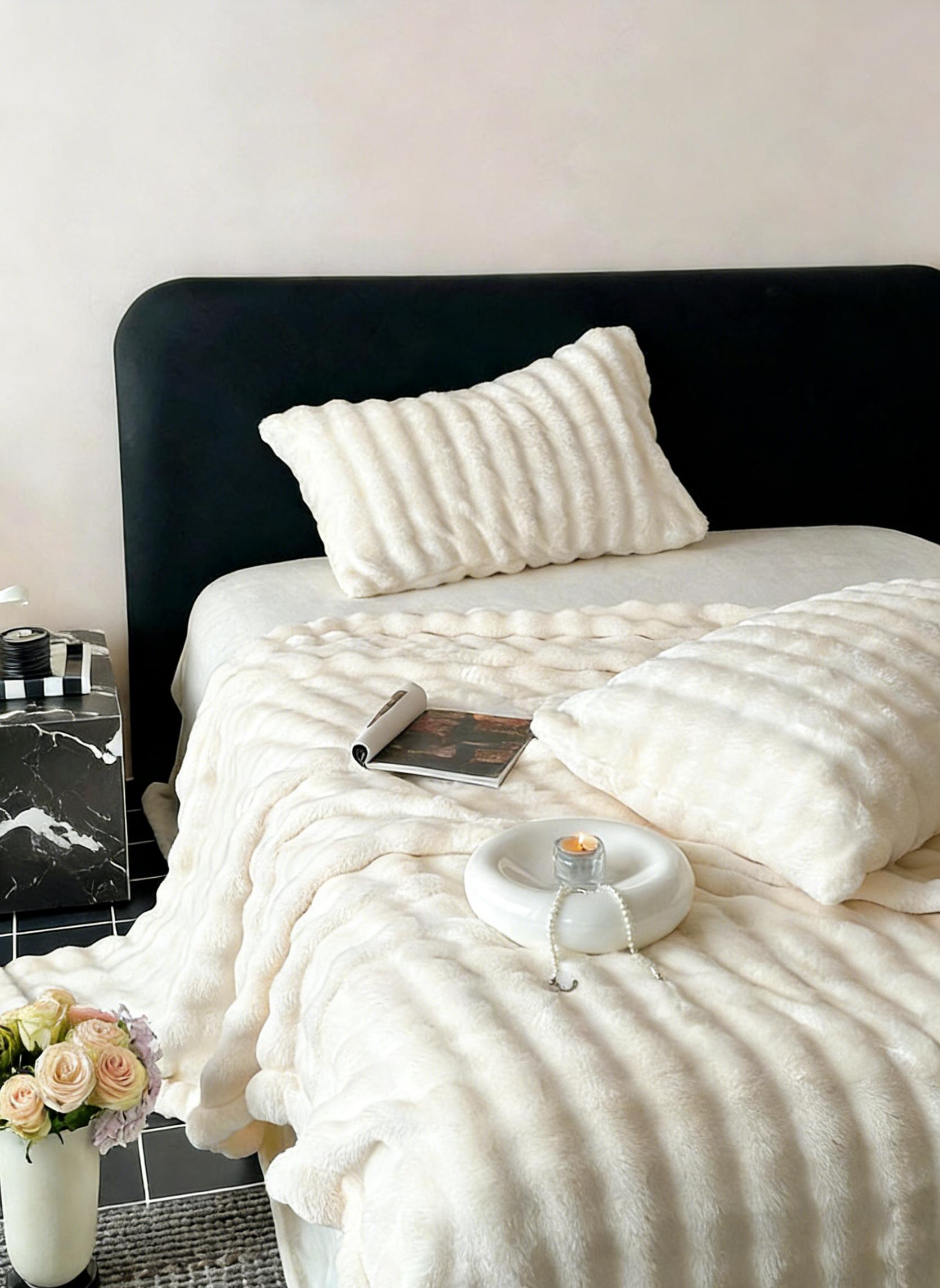 - Before first use: Do not wash.Shake and pat the blanket firmly outdoors or in a well‑ventilated area several times to remove most loose fibers.